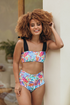 Women's high-waist style swimsuit. Straps details on the sides. Exclusive print. Fully lined. Medium coverage in the back of the panty. Top not included.